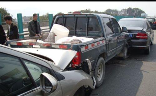 这位司机同志,一边嚼着瓜,一边看着窗外,完全没注意到前方的情况。结果,后方一辆大货车和一辆面包车见状,紧急刹车,但还是没能避免碰撞。就这样,三辆车连环追尾,场面一度十分壮观。